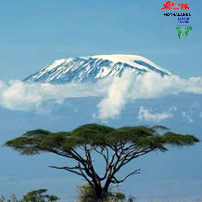 Rising abruptly from the open plains, capped by snow and frequently fringed by clouds, it is one of the Africa classic images. Kilimanjaro is a dormant but not extinct volcano.